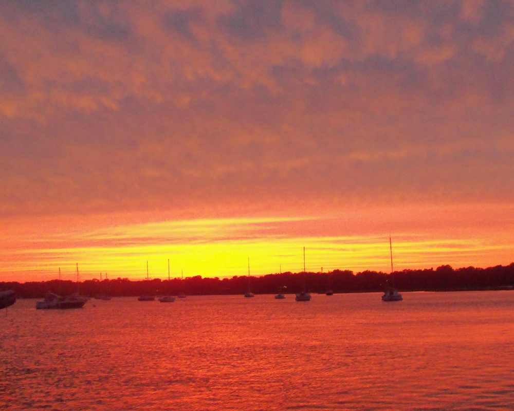 Then we got to the open water in Port Royal Sound and it got choppy. We talked about this being the place we decided to do our outside passage last year. Wish it was that calm now. But we’ll see beautiful sunsets and stuff going this way too. Maybe next time.